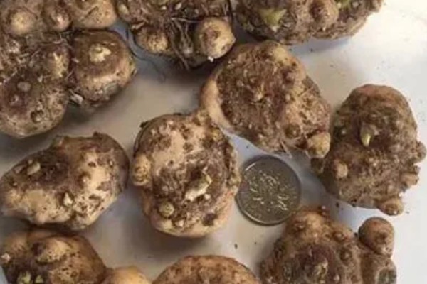 3、选择种球:将健壮光亮、球茎达到3厘米左右的种球作为栽培对象,再用生根水浸泡10分钟。